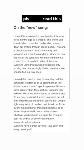 In his Instagram Stories, Bryan shared a lengthy statement after learning that the snippet of his new song caused waves among listeners and individuals online.