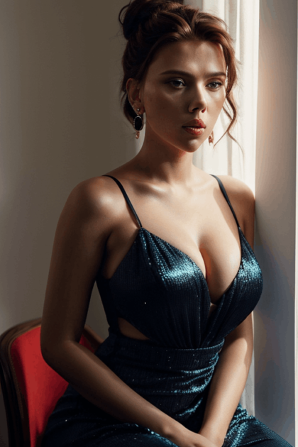 Imagine this: a plush seat enveloping the legendary hourglass silhouette of Scarlett Johansson. She exudes confidence, her graceful stance mirroring her unwavering elegance. Every contour of her form narrates a story of resilience and femininity, reminiscent of the iconic sirens of cinema’s golden era.