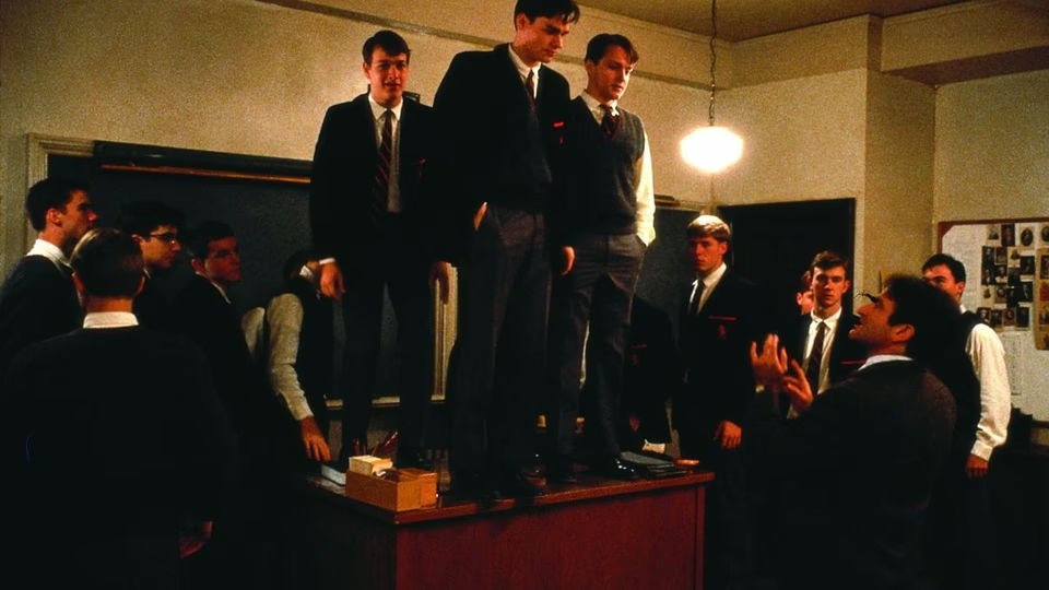 It takes a lot of honed skill to improvise a scene while filming it to make it not too obnoxious or lackluster. In case of Dead Poets Society, Robin Williams had to break off from his usual comedic self to improvise his dramatically enthused role, and keep the scene poignant instead of losing its gravitas.