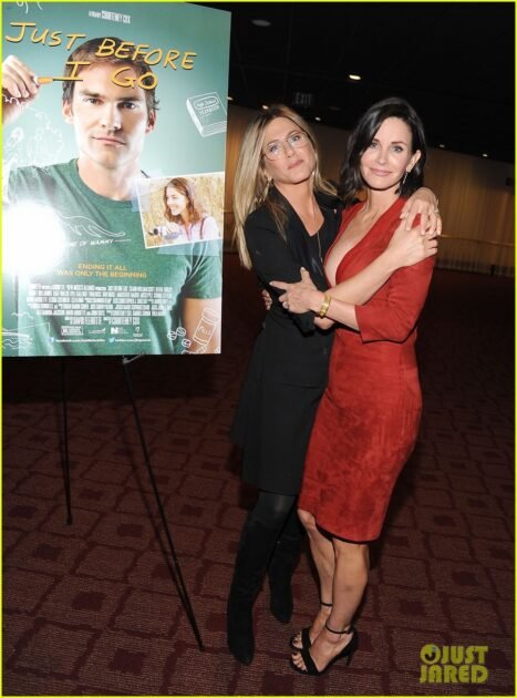 Jennifer Aniston and Busy Philipps came together to show their friendship and support for Courteney Cox at the premiere of her new film, “Just Before I Go,” at ArcLight Hollywood. Aniston exuded elegance and love for her close friend as she attended the event.