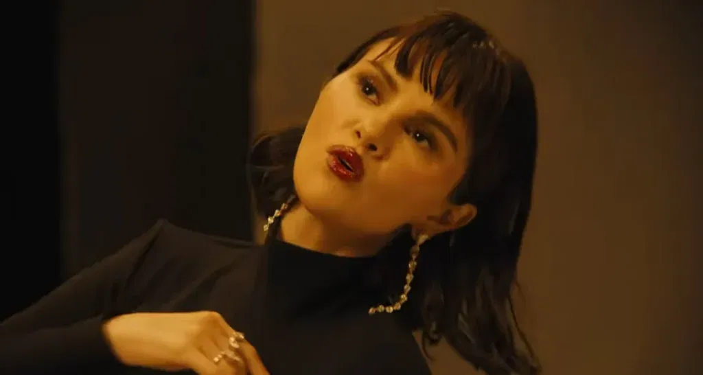 The music video featured the singer sporting a black leotard, a two-piece, and a glossy leather jacket, with the visuals of the clip ostensibly inspired by ‘80s music. Zeroing in on her facial appearance, over the high cheekbones and slick jawline in her face, Gomez also debuted a new, piecey fringe that contrasts with her usual blunt bob.