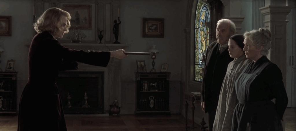 Each plot point and minor occurrences can be logically traced back to the plot twist, making sense, resulting in a devastating ending where we realise Grace killed her children in a moment of psychological breakdown and then took her own life. The movie is a character study of post-war trauma and guilt, as Grace’s husband died in WWII.